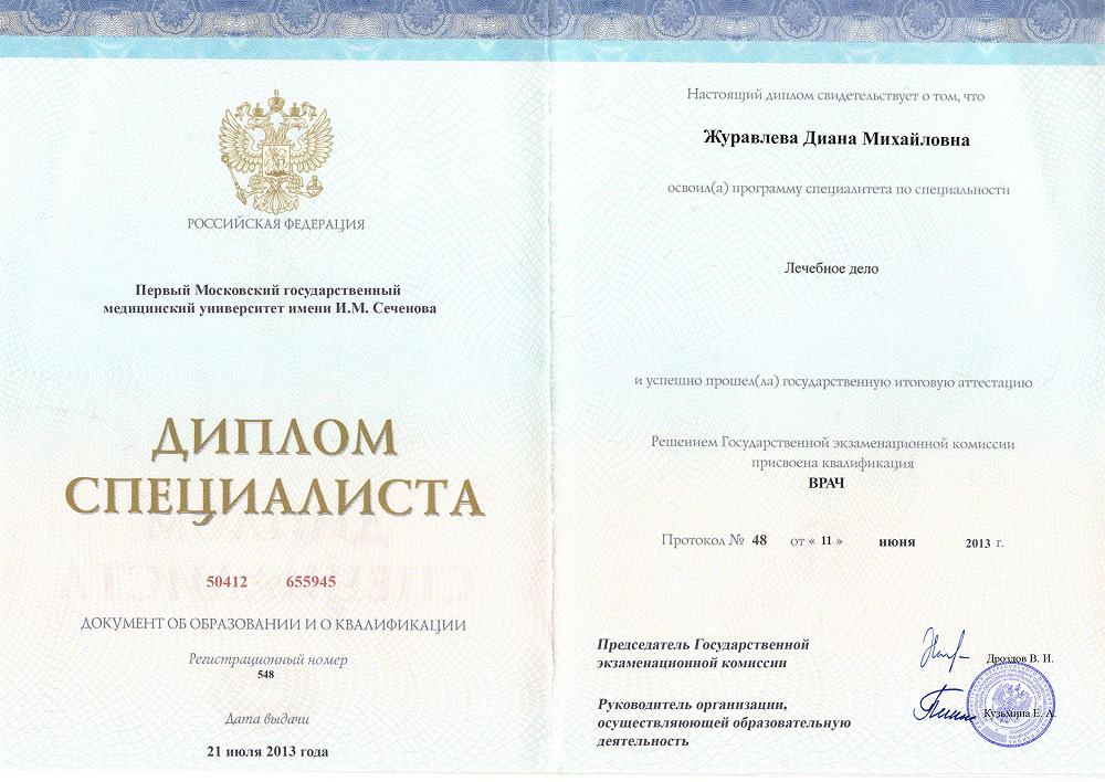Первый Московский государственный медицинский университет имени И.М. Сеченова (Лечебное дело)